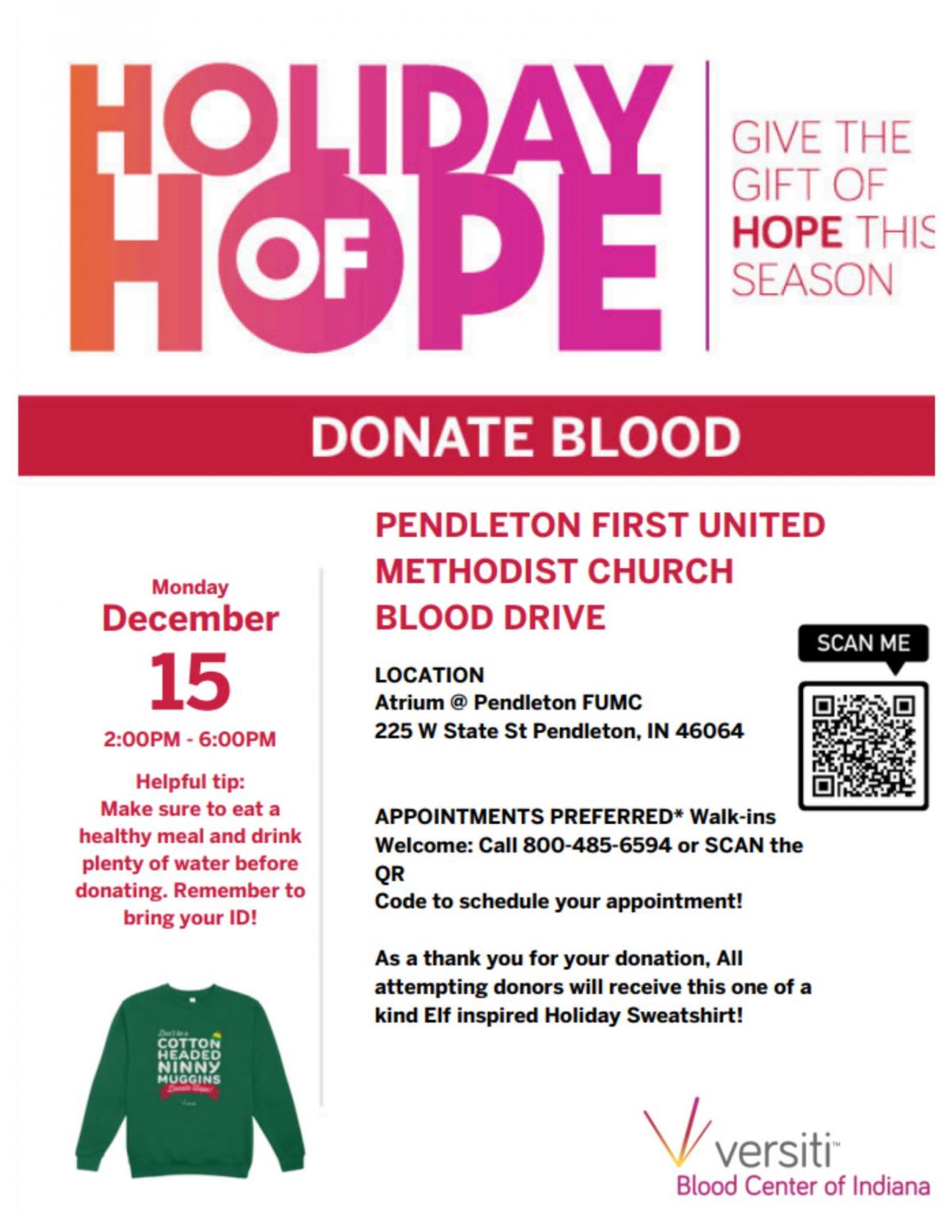 Blood Drive DEC 15th 2-6pm
